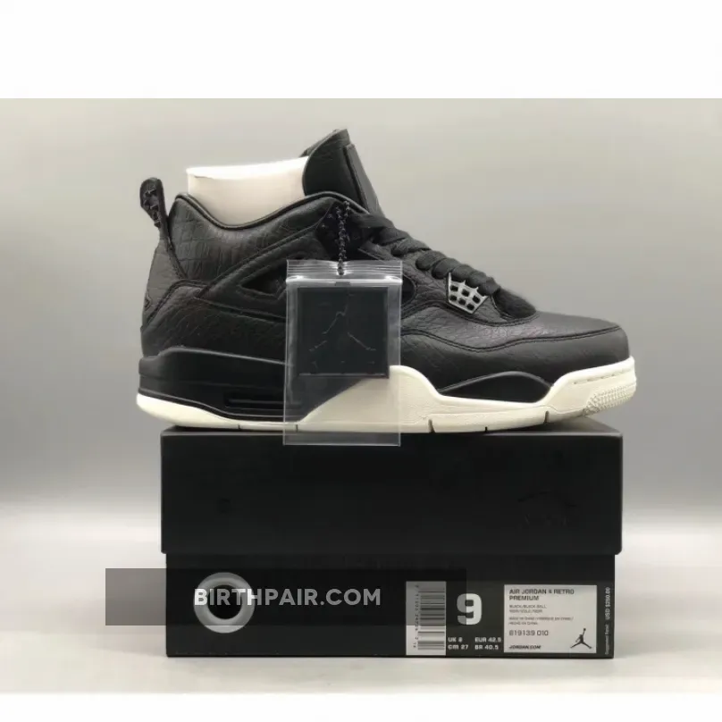 This Premium edition of the Air Jordan 4 is built with similar detailing as the Pinnacle releases with a Black premium tumbled leather construction that includes faux pony hair on the tongue, exotic textured skin embossing on the collar, waxed laces, quilted insoles and premium detailing throughout.