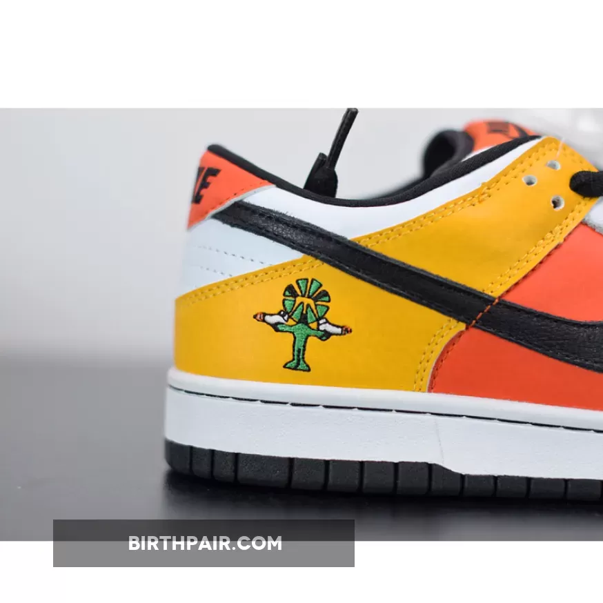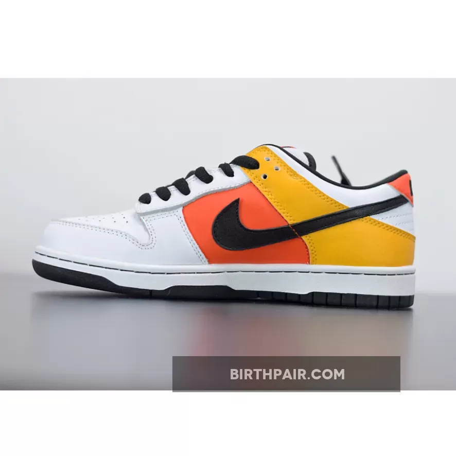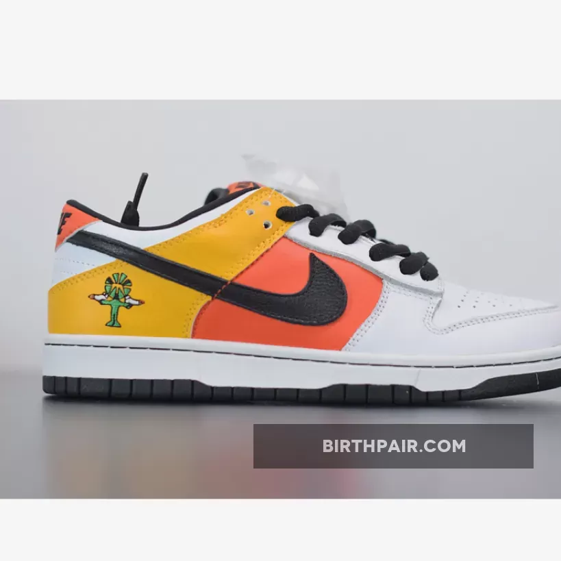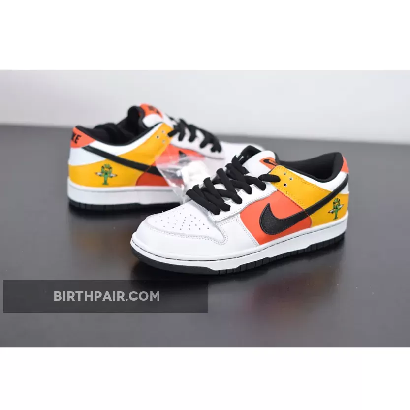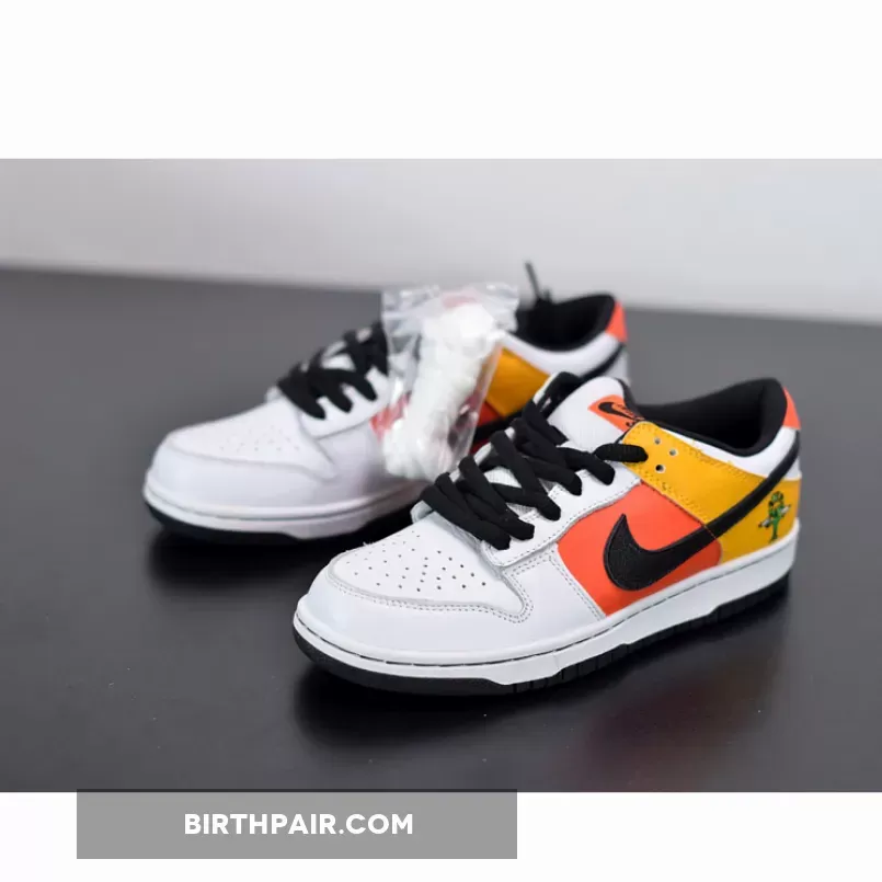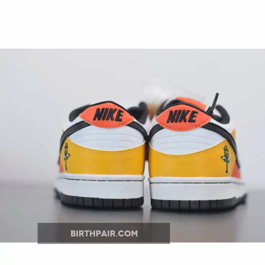Definitely an interesting shoe, the Home Rayguns were designed by famed shoe customizer Methamphibian. He took inspiration from Nike’s made-up ABA team, the Roswell Rayguns, and actually painted this design on a pair of Air Force 1s. The design soon made its way to the Nike Dunk SB. This team, led by the fly Dr. Funk, who was portrayed by Vince Carter, was the center of a number of Nike ads during the 2002 NBA Playoffs. Jermaine O’Neal, Paul Pierce, Baron Davis and Jerry Stackhouse were also part of this fictional team. Not following traditional team colorways, this black-based sneaker is actually the home sneaker, rather than it being a usual white or lighter color. On the yellow heel is the Raygun logo, while the side panel is orange and the toe is black. The shoe is finished with a contrasting white outsole.