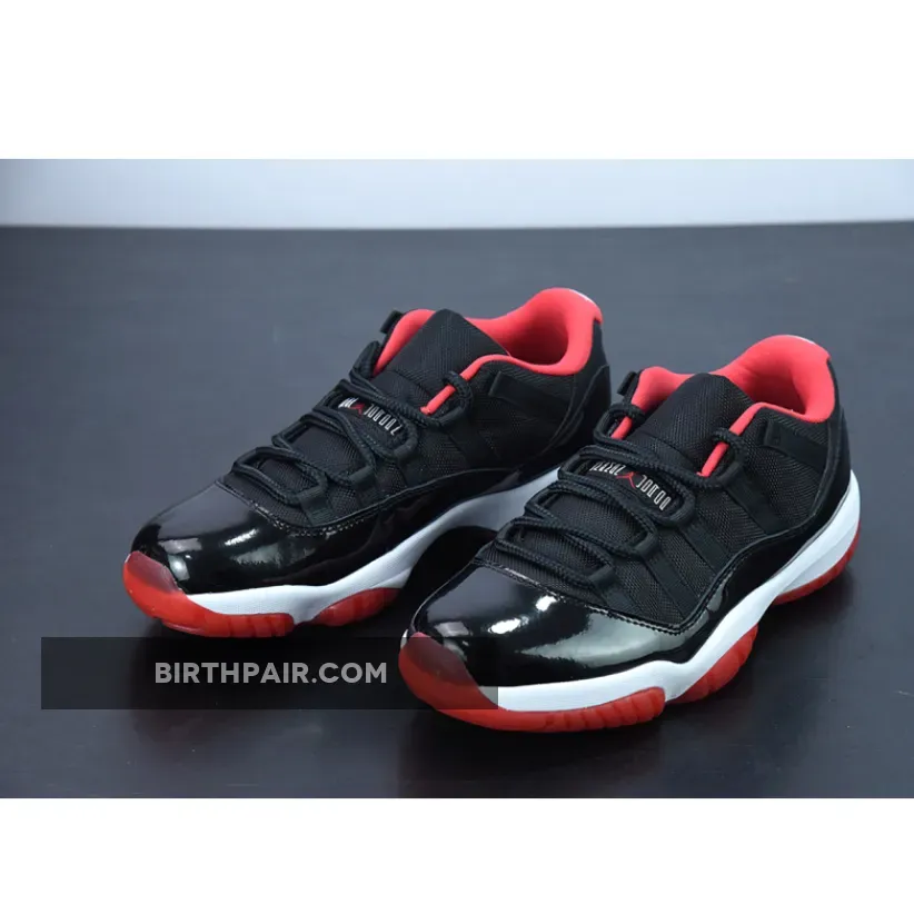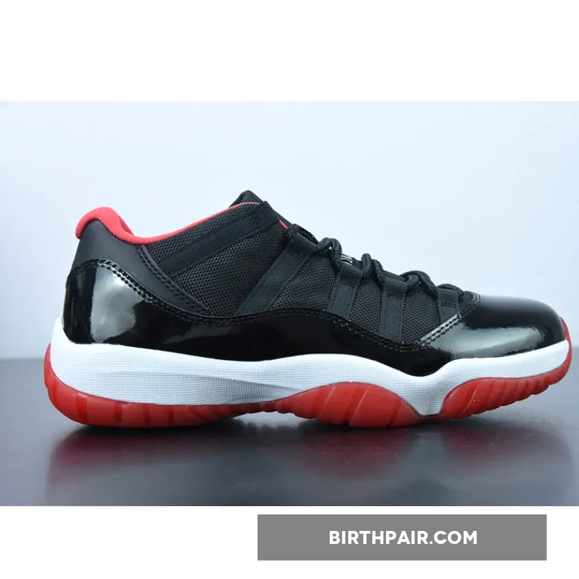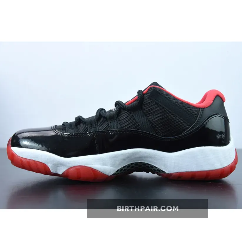 This Air Jordan 11 Retro Low features the iconic Bred-theme having a full Black mesh and leather upper with patent leather overlay on the mudguard sitting top a White midsole and semi-translucent dressed in Red. The shoe is also highlighted with the iconic carbon fiber and True Red interior.