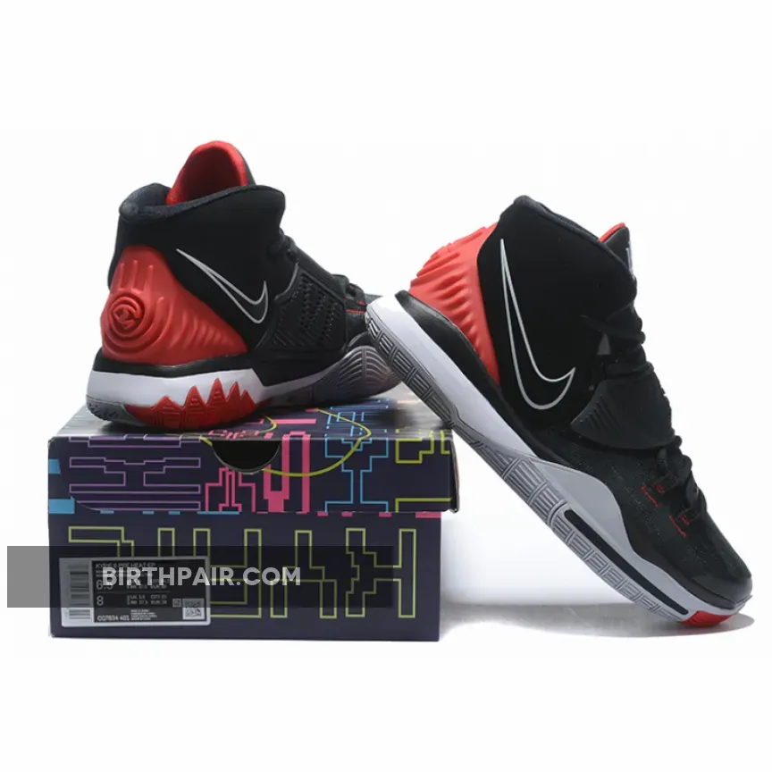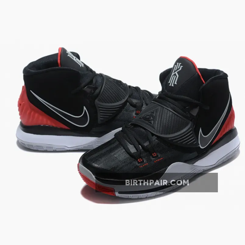 The Nike Kyrie 6 Bred is a basketball sneaker that was released as a unique colorway of the collaborative line between NBA player Kyrie Irving and Nike.