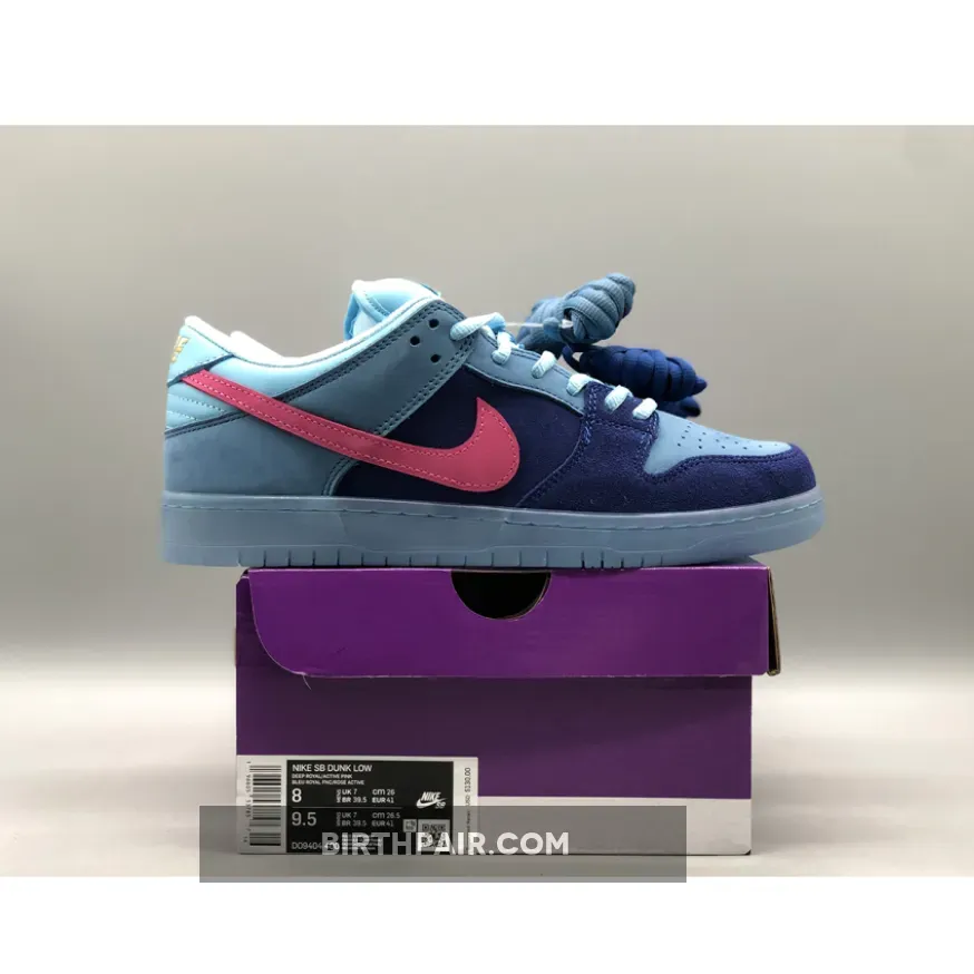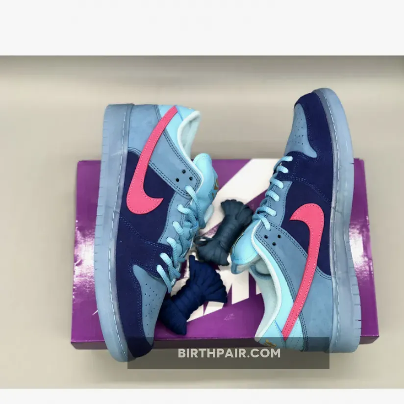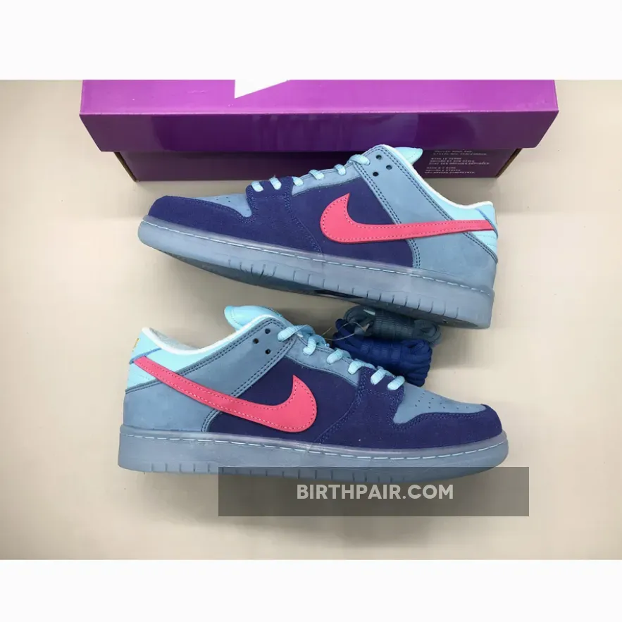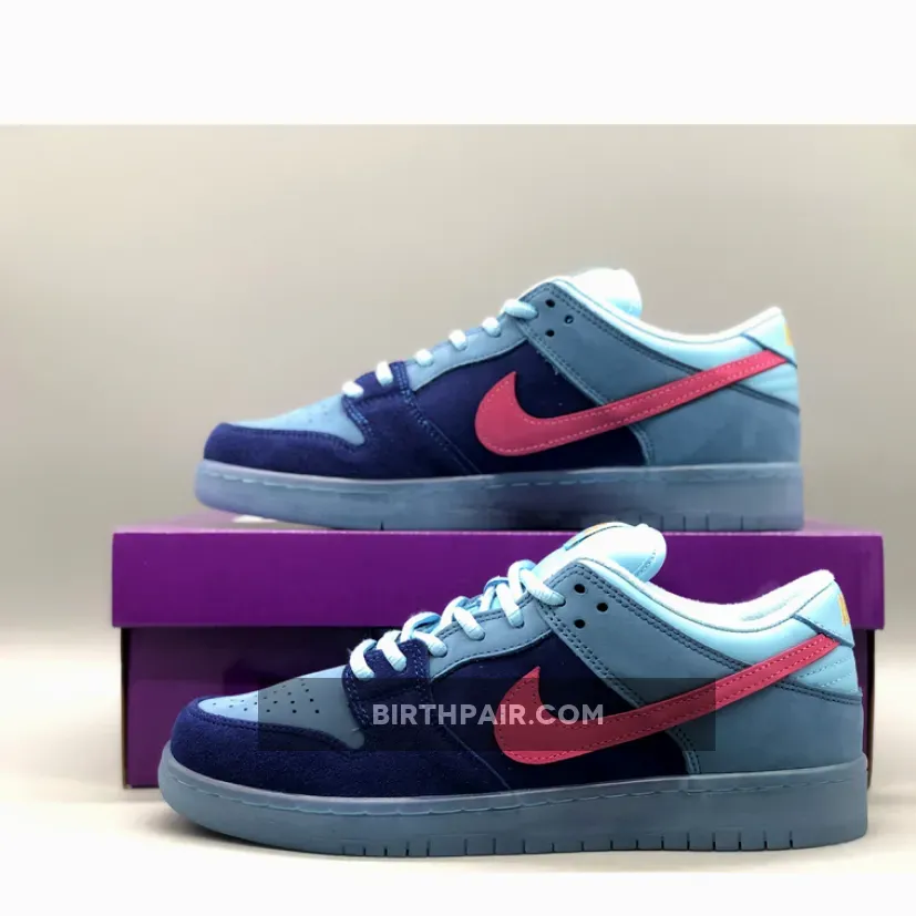 While this Dunk Low doesn’t boast as many features as its counterpart, the colour blocking on these will have attracted the attention of fans and sneakerheads alike. The suede pink Swoosh nods to pony hair panelling on the high edition, while providing a great pop to the shoe's branding. The panelling throughout the shoe uses different shades of blue, from light on the collar to dark on the mudguard. An array of materials has also made their way onto the construction, including suede from the toe box up to heel counter and even swapping out the regular padded tongue for a leather one. The semi-translucent sole is what really lays the cherry on top of the cake for this edition, complementing the blue accents so beautifully.These will be dropping on SNKRS as well as select retailers on the 20th of April in what you can expect to be limited quantities. For more information on how to pick up the Run The Jewels x Nike SB Dunk Low “Blue Pink” keep it locked into Our Store Supplier!