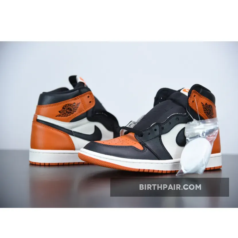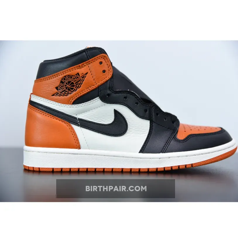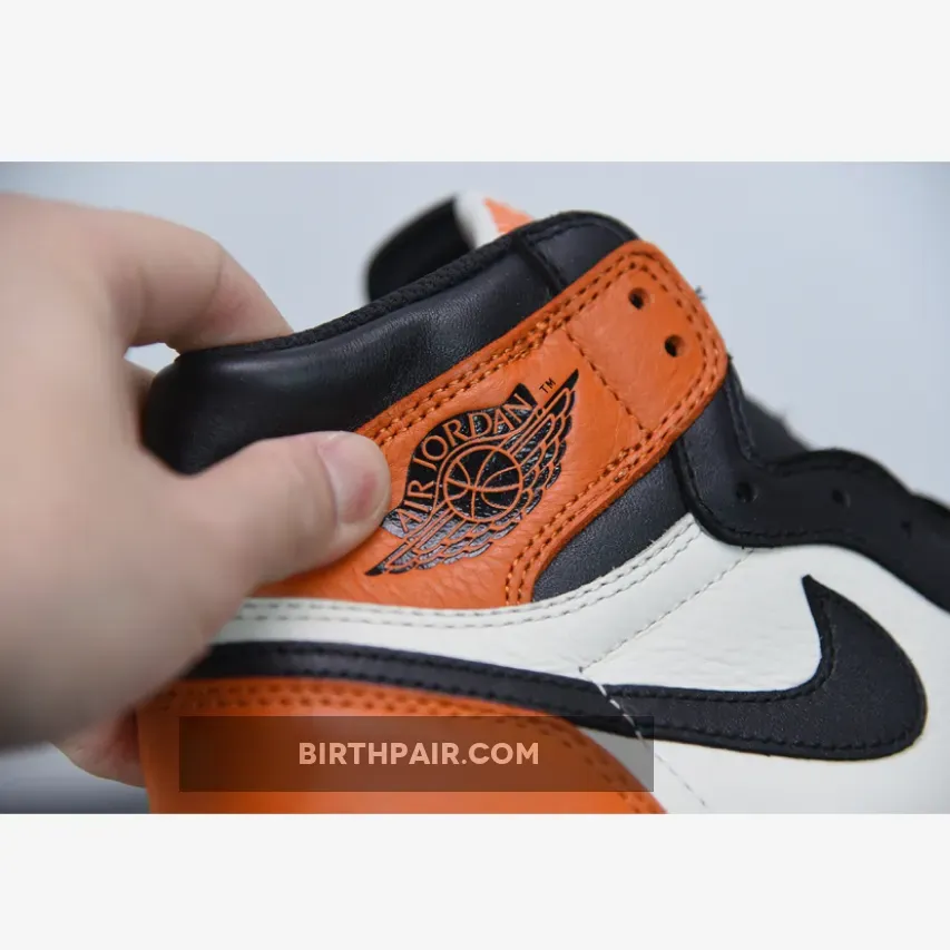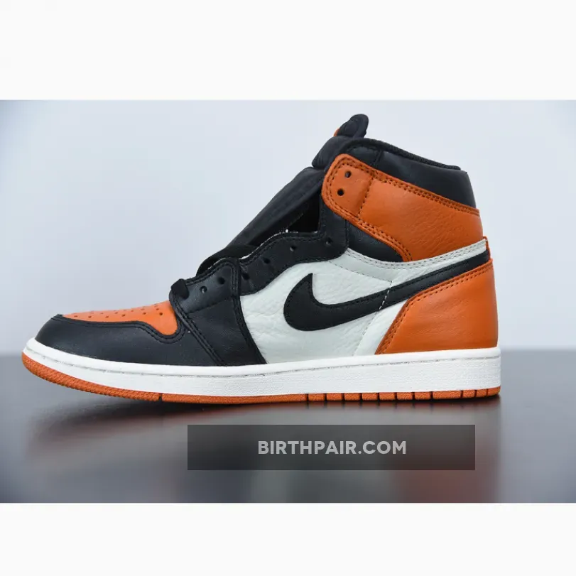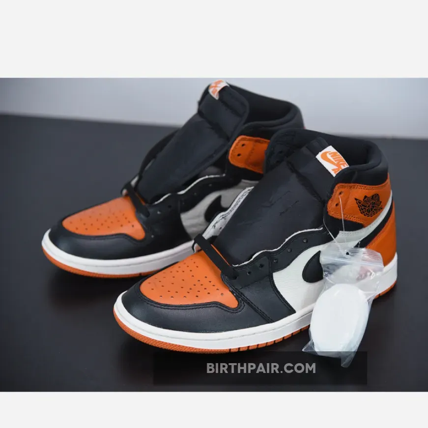 In 1985 on a Nike Europe tour, Michael Jordan shattered a backboard when throwing down a monstrous dunk while wearing an orange, black, and white uniform. Commemorating the moment and uniform, this 2015 Air Jordan 1 ‘Shattered Backboard’ (aka ‘Shattered Backboard’ 1.0) sneaker was released. Shortly after in the Fall of 2016, an Air Jordan 1 ‘Shattered Backboard Away’ (aka ‘Reverse’ and ‘Shattered Backboard 2.0’) was released. The sneaker keeps the black laces and Nike branding, but swaps out the orange toe box and black around the toe and tongue for white.