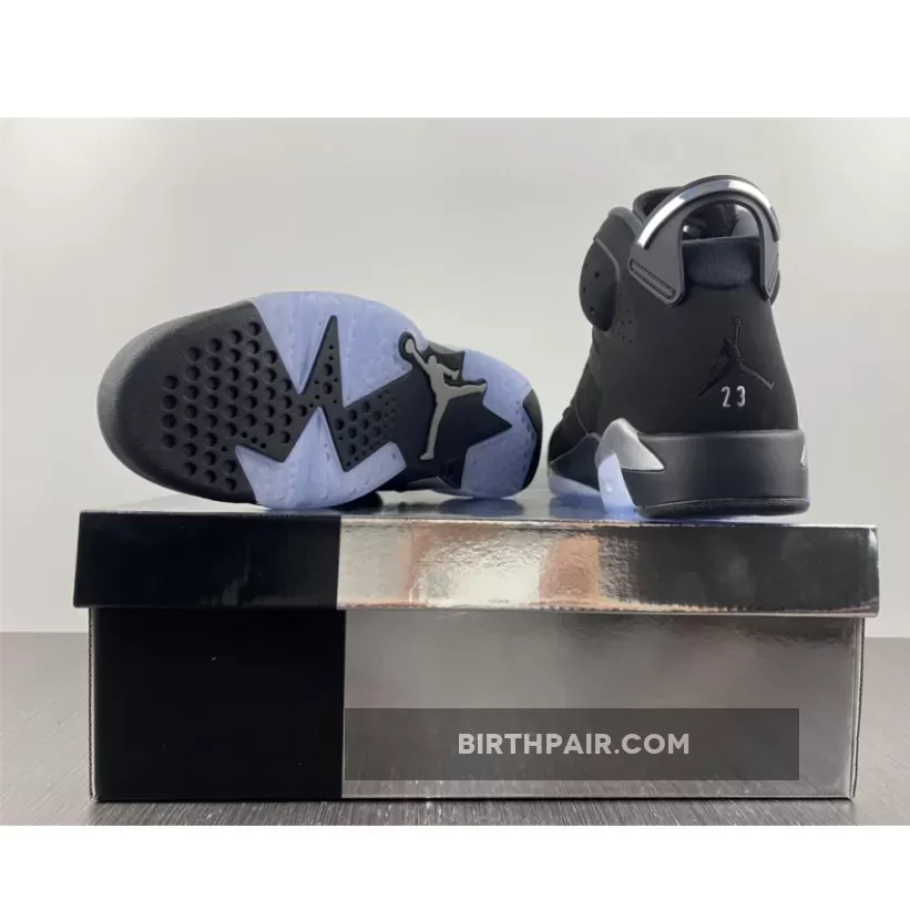 The Air Jordan 6 Retro ‘Chrome’ showcases a familiar design previously seen on the ‘Chrome’ Air Jordan 6 Low from 2015. The upper is crafted from solid black nubuck with silver Jumpman branding on the lace guard. Standard AJ6 details remain intact, including a windowed tongue, lace locks, and a spoiler-like heel tag. The mid-top is mounted on a black polyurethane midsole, accented with metallic silver detailing and supported by a translucent rubber outsole.