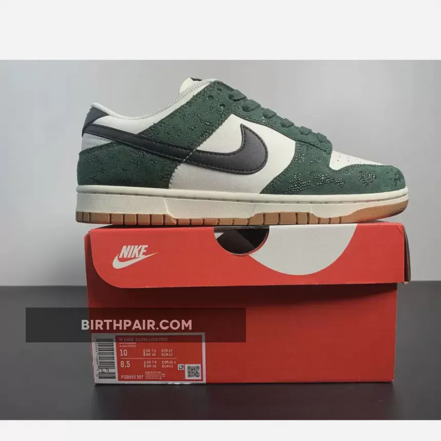 The exclusive arrives with clean White leather uppers that are quickly contrasted by snakeskin overlays in a deep shade of green, adding another visual and textural layer to the beloved silhouette. Meanwhile, branding hits can be found on the traditional panel swoosh in black, black and white embroidered Nike heel logos, tongue tag and insoles. Underfoot, the silhouette concludes with a compliment familiar to the model’s SB toolings as the tread shines in a “Gum” finish.