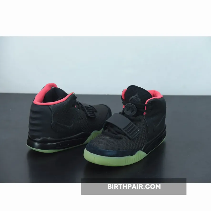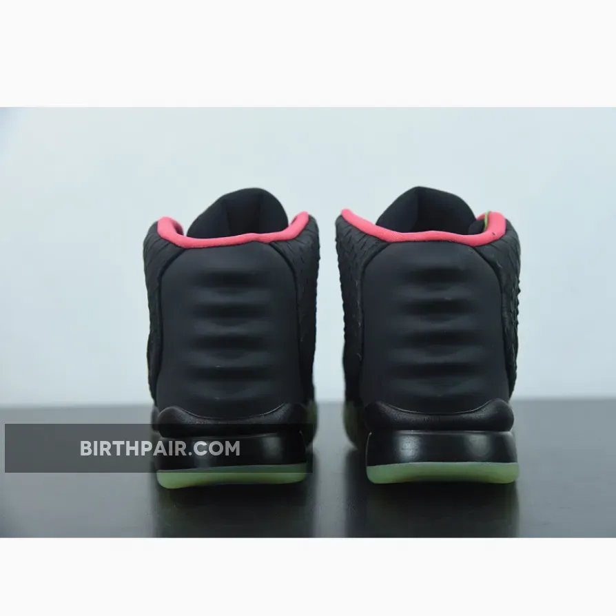 This release featured a Black-based upper with Solar Red accents atop glow-in-the-dark outsoles.