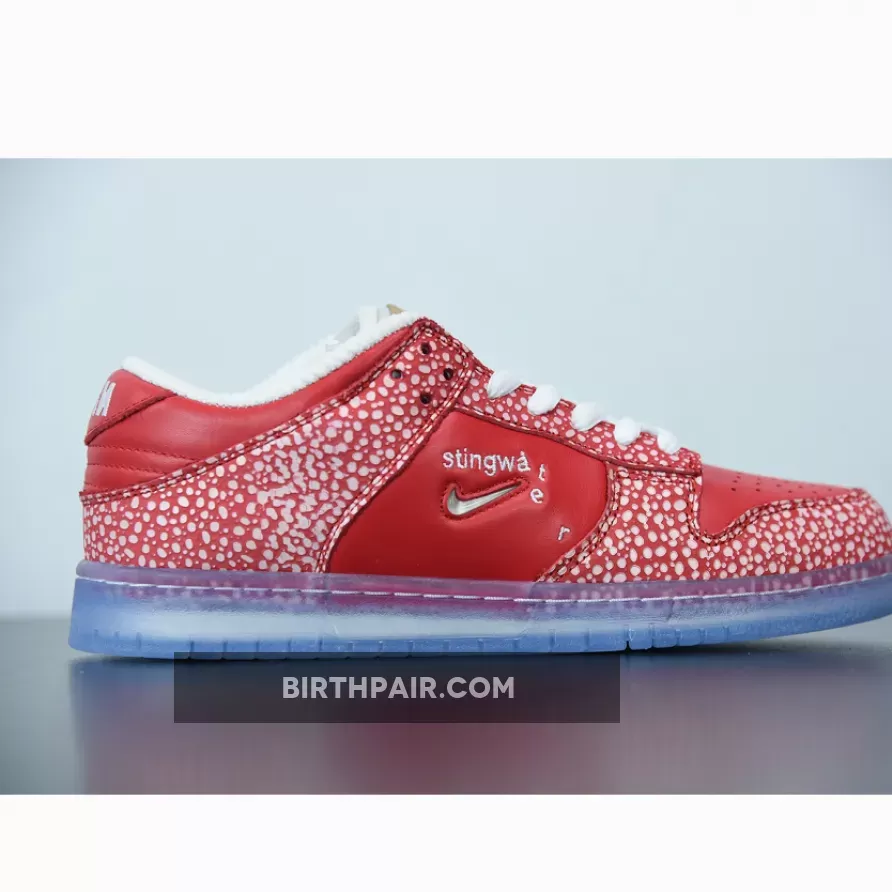 By now, we have no doubts that many sneakerheads already have a pair of Nike Dunks in their rotation. After the silhouette experienced a large resurgence in 2019, the Swoosh brand has since then continued to roll out a vast array of colourways and used the Dunk Low to host some of the most iconic collaborations such as famous fashion designer Virgil Abloh and renowned American rapper Travis Scott. This time, the sportswear giant reached out to NY-based skate label Stingwater that is led by Daniel Kim to bring forth the Stingewater x Nike SB Dunk Low Bright Red. Again, as with most Dunk releases, the hype level on this iteration is insane.Working on a leather-constructed upper that is predominantly hued in red, a plethora of white spots, almost reminiscent of Nike’s signature elephant pattern, adorn the rear and front panels. Across the sidewalls, a clear jewelled mini Swoosh takes helm complemented with Stingwater branding that looks like it’s falling off the side of the shoe. Not only that, the tongue is graced with a square gold badge that reads “Stingwater Shoe – VERY SPECIAL”, and this sits on a glossy plastic tongue that also features a little pocket behind for your secret stash, very much like the one on the Nike Dunk Low City Market. To complete the design, the model is rounded off with an icy blue midsole.The Stingwater Nike SB Dunk Low Red is no doubt one of the best Dunk renditions we’ve seen to date, and we can guarantee that both skateboarders and shoe collectors have this on their wishlist. To stay in the know of high-heat releases such as this one, stay locked in right here at Our Store Supplier, and don’t forget to use our Dunk size guide so you know how they fit.