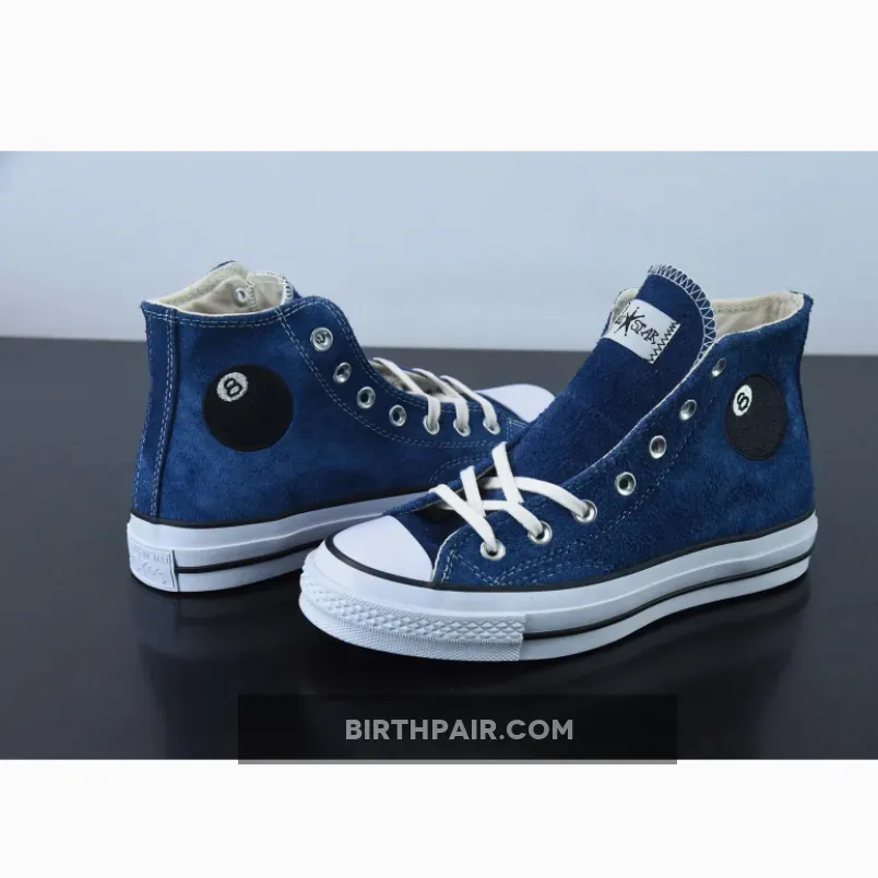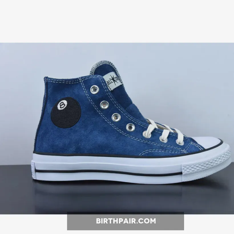 The Stussy x Converse Chuck 70 High 8 Ball Navy is what you get when a skater label and streetwear brand come together for a collaboration.