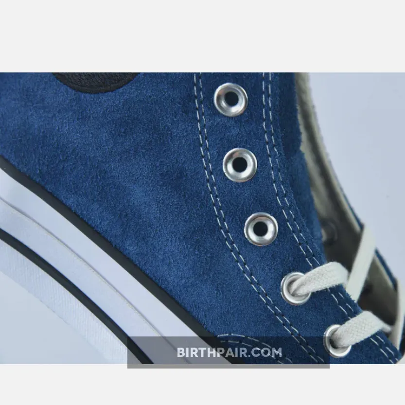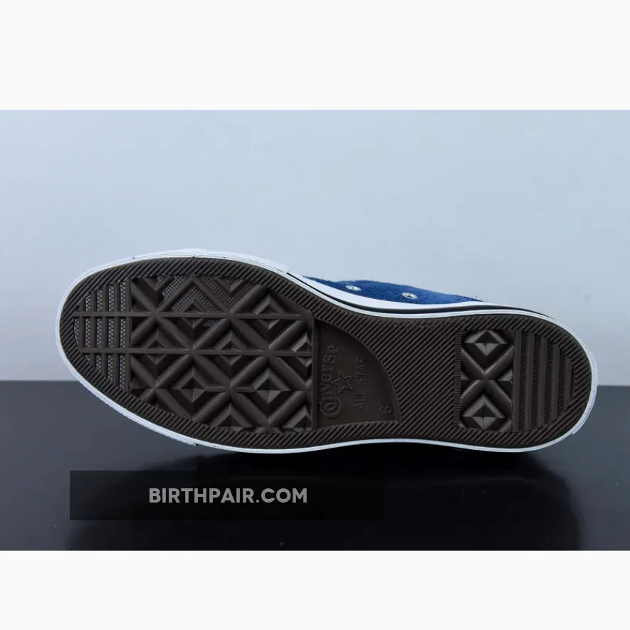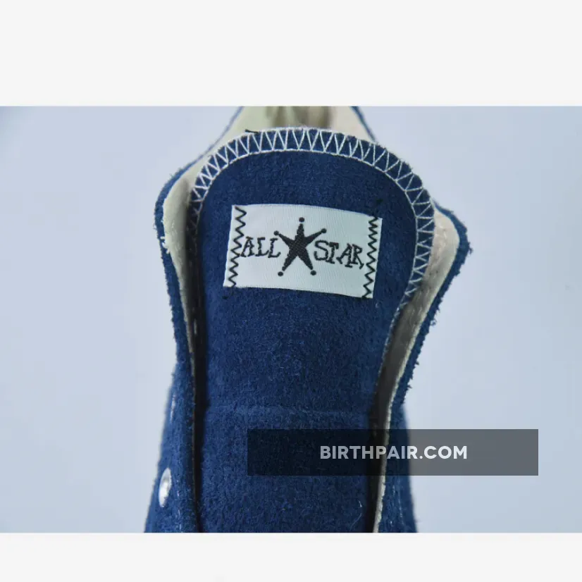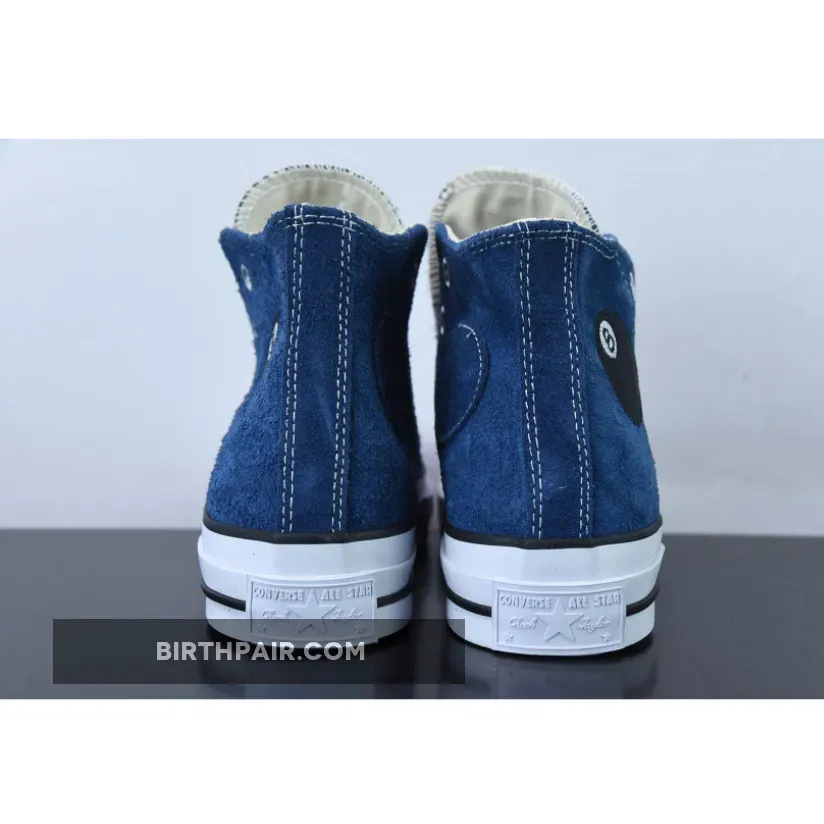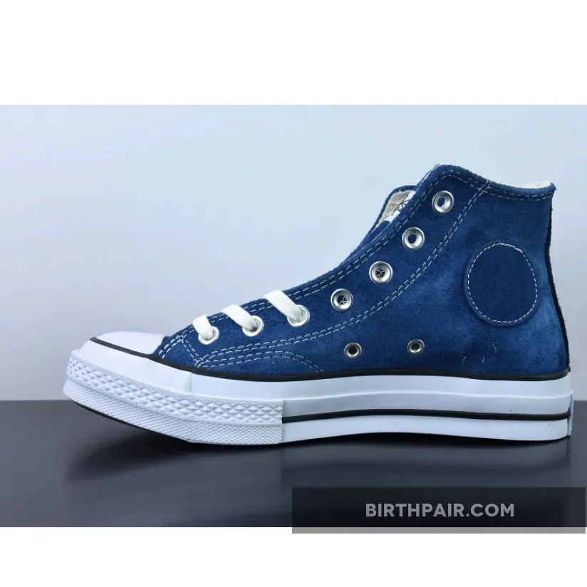 This iteration of the Chuck 70 Hi is produced with shaggy suede base layers in navy.