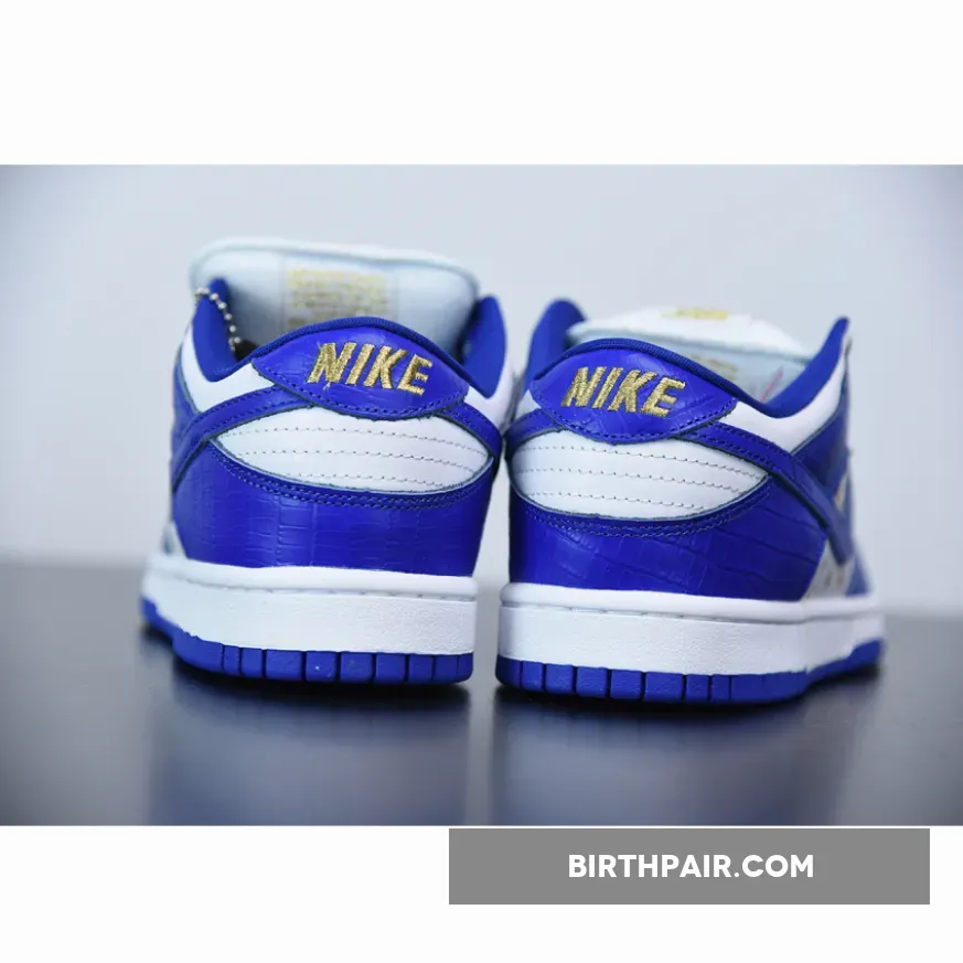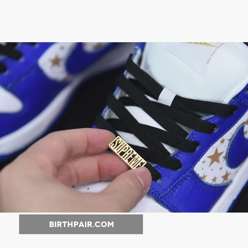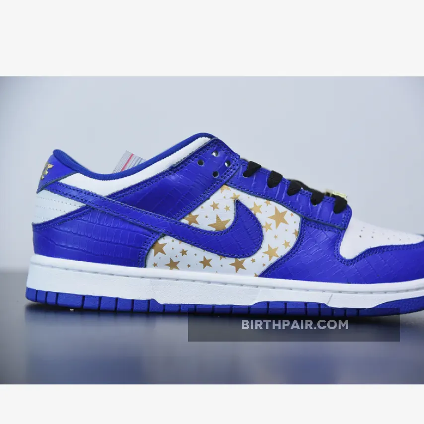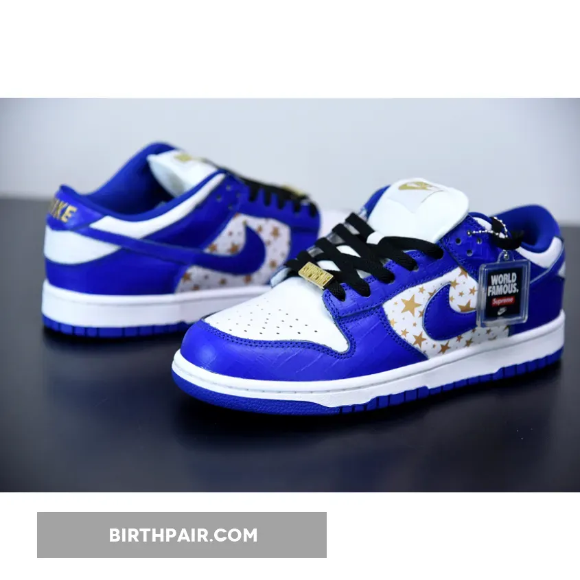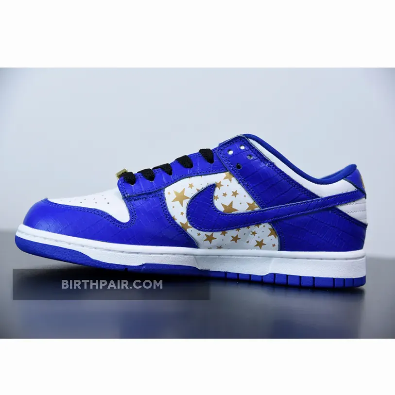 The forthcoming release of the Supreme x Nike SB Dunk Low Stars Hyper Blue has been the hottest discussion in the streetwear and sneaker community over the last months. Set for a global release very soon, official images of the hotly anticipated Dunk Low skate shoe are now live so keep reading on for a closer look and if you’re planning on adding them to your collection, our Supreme x Nike SB Dunk Low Stars Hyper Blue raffles list is your ultimate how-to-cop guide.This latest offering by the Swoosh team and world-famous NYC-based skate store Supreme pays homage to their previous Nike Dunk High collaboration back in 2003. The latest official collaboration from the power duo consists of four low top Nike SB Dunk sneakers in different colorways and boasts black-hued croc skin overlays for an eccentric look. The pair we have here is painted in a Hyper Royal colourway, and we have no doubts that the hype level on this variant is insane.Equipped with a white smooth leather base, gold star print detailing that featured on the abovementioned Supreme x Nike SB Dunk High also appears here across the quarter panels. Nike Swoosh branding hits the side panels, tongue tag and heel tab, and further Supreme branding presented on the hangtag, dubraes and lace tips complete the look.As for a release date, the Supreme Nike SB Dunk Stars Hyper Blue Low is scheduled to release very soon via Nike and select skate shops globally, so make sure to keep it locked in right here at Our Store Supplier if you’re looking to get your hands on a pair.