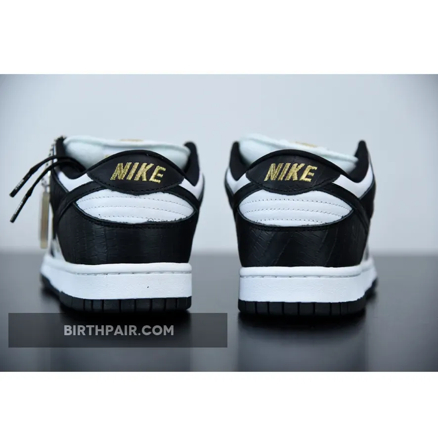 If you think you’ve already copped enough pairs of Nike Dunks over the past year, then you’re wrong as the Supreme x Nike SB Dunk Low Stars Black is a shoe highly worthy of being added to your collection this year. Also, make sure you sign up for every release listed on our Supreme x Nike SB Dunk Low Star Black raffles list if you are set on bagging your size on drop day.The upcoming Dunk Low collab announced by the Swoosh brand and New York City-based skate store consists of four different colorways, and the pair we have right here might just be the best one of the bunch. Constructed beautifully with a crisp white leather upper, faux croc skin overlays in black runs from the toe box all the way to the heel tab. Further details appear on the side panels in the form of metallic gold stars that was introduced in the previous collaboration.