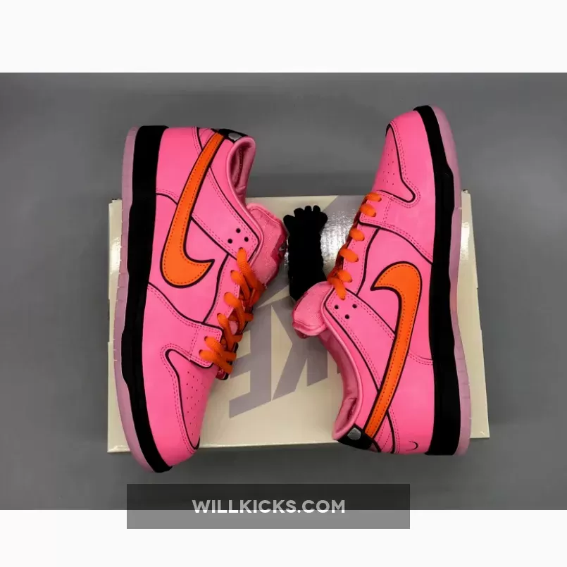 The Powerpuff Girls x Nike SB Dunk Low “Blossom” closely mirrors the color palette of the team’s self-proclaimed leader.