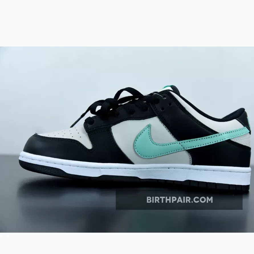 The Nike Dunk Low GS Black Tiffany Blue is the Swoosh team’s latest offering that will have many sneaker fanatic parents wanting to cop for their little ones. The Nike Dunk is undeniably one of the most sought after shoes by many sneakerheads currently, and the good news is that Nike has made them available in kids sizes meaning that the youngsters are now rocking heat on their feet daily.Seen here in a low-top silhouette, this Nike Dunk Low crafts a full leather upper decked out in black and smoke grey overlays. Nike’s signature Swoosh emblems shoot across the lateral and medial side panels in a Tiffany Blue colourway, then reunites at the heel panel where further branding details are present.