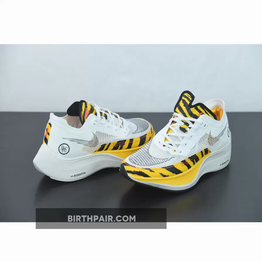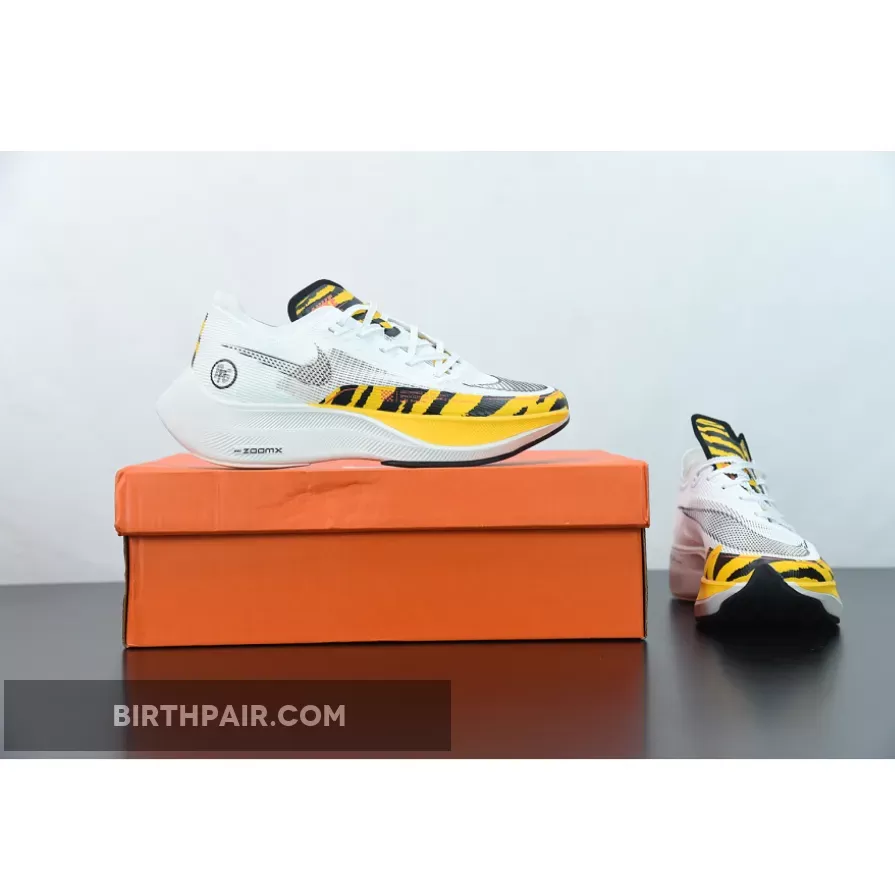 As Nike-sponsored athletes from all-over the globe anticipate setting personal bests and breaking records at the 2020 Tokyo Olympics, the brand has unveiled more styles of the footwear these same runners have made staples in their training journey. The ZoomX VaporFly NEXT% 2 has recently turned back the clock to the brand’s days as Blue Ribbon Sports (BRS). Akin to previously-seen iterations of the carbon fiber plate-donning model, the newly-surfaced pair indulges in a mostly-white color palette. Hits of faint black create a two-tone makeup across the ultra-breathable upper, taking over the “BRS” stamp on the lateral heel. The tall foam midsole underfoot follows suit in a “yin-and-yang”-appropriate style, but reinforcement around the forefoot and detailing on the tongue and spine deviate in bold tiger stripe patterns. “University Gold” delivers an eye-catching touch that’ll surely motivate wearers to go fast.