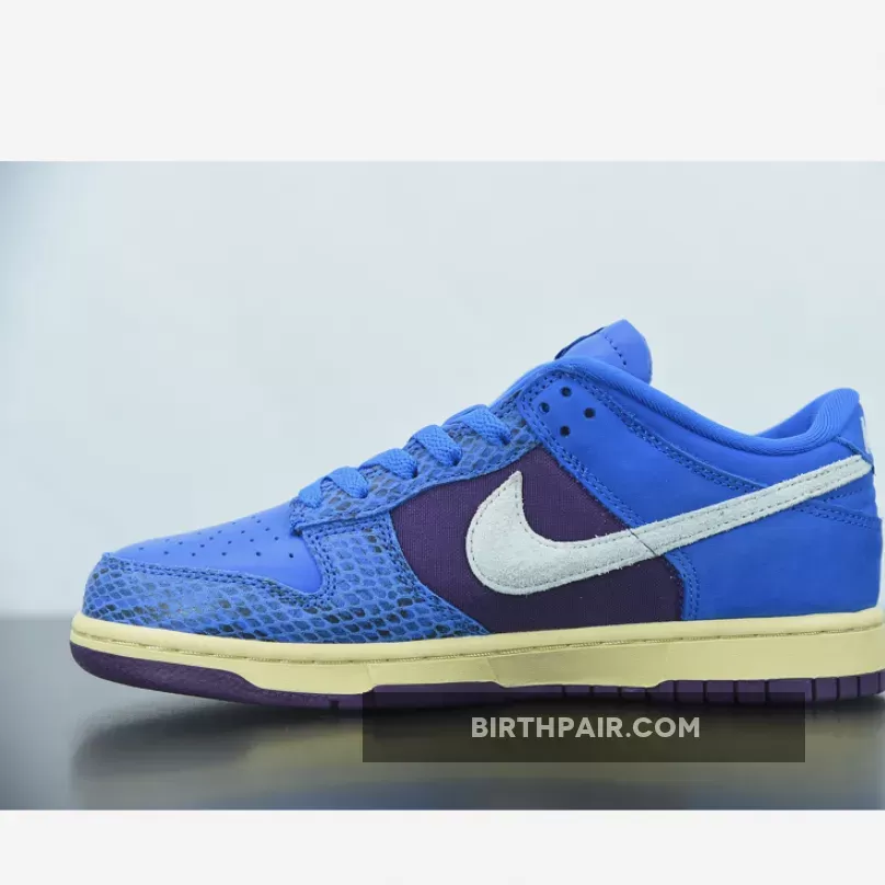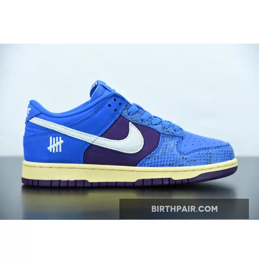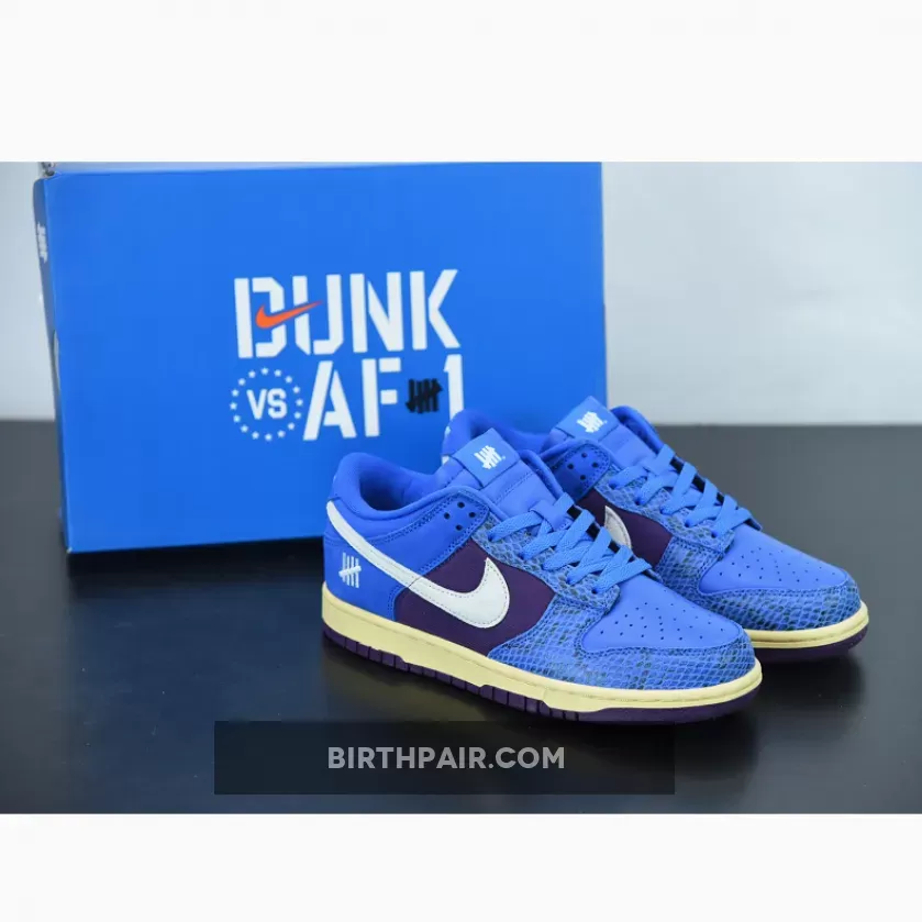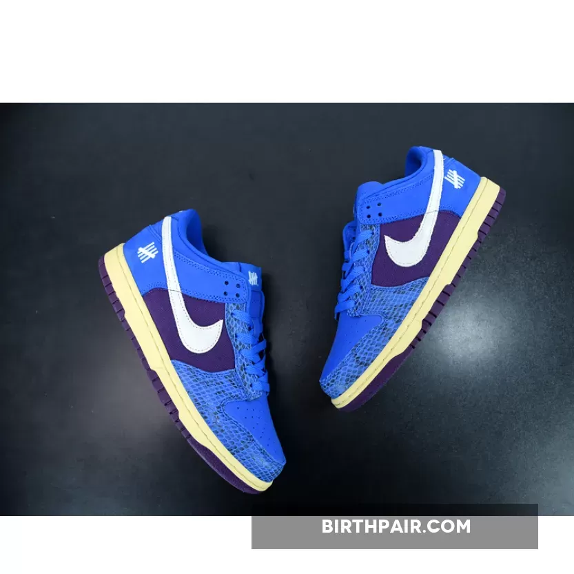 We have no doubts that many of you have already been able to add a pair of Nike Dunks to your collection since the Swoosh brand has not stopped pumping out colourways since its revival in 2019. So if you think it’s about time to stop collecting, the all-new UNDEFEATED x Nike Dunk Low Blue Purple will change that mindset. We’ve got a closer look at this new Dunk rendition designed by LA-based streetwear imprint UNDEFEATED, so read on as we’ll tell you all about its standout features.GR colourways of the model usually come with a smooth leather base. However, this co-branded Dunk Low opts for a premium makeover instead, bringing in canvas, faux snakeskin, and tumbled leather toolings—colour blocked in purple and blue inspired by the 2006 Nike Air Force 1 Low InsideOut. Also, use our Nike Dunk size guide to know how they fit.