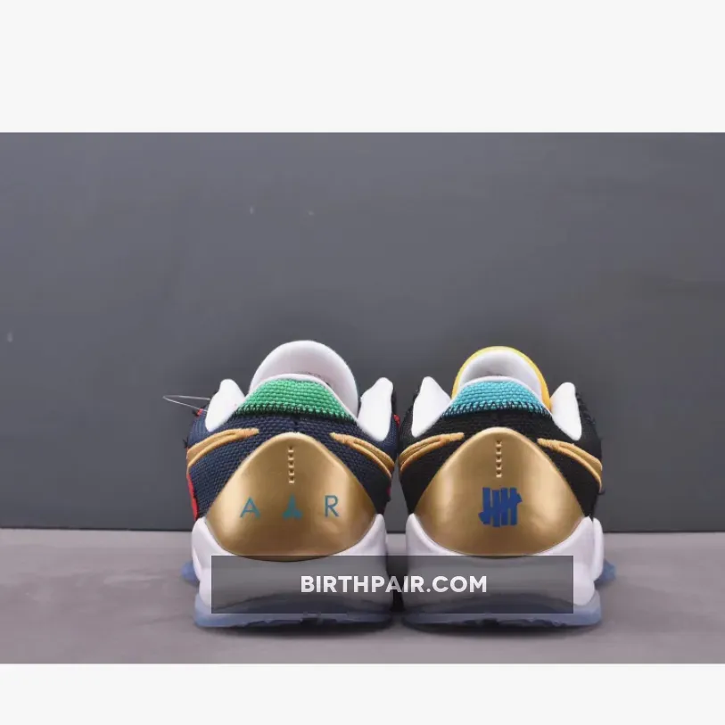 In June of 1996, 12 teams passed on Kobe Bryant in the draft. One pair in this Undefeated two-pack collaboration is comprised of a combination of colors from those 12 teams, while the other pair includes colors from the franchise that traded him, the Charlotte Hornets, symbolizing the What If? motivation that drove Kobe to outwork his opponents. Both pair feature Gold accents that reference his career championships.