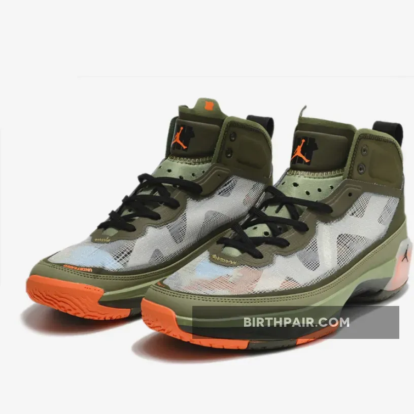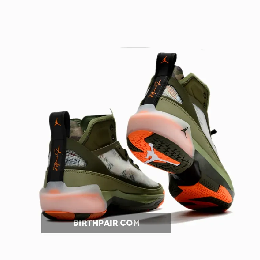 A stylish, military-inspired iteration, the UNDEFEATED X Air Jordan 37 Olive Orange will surely appeal to many. Made in collaboration with Los Angeles-based sneaker boutique, the piece is a great finishing touch to your streetwear looks. The upper features a fashionable white mesh see-through design that reveals a camo print underneath. Complementing this base are hunter-green and forest-green leather overlays which add to its chic look.