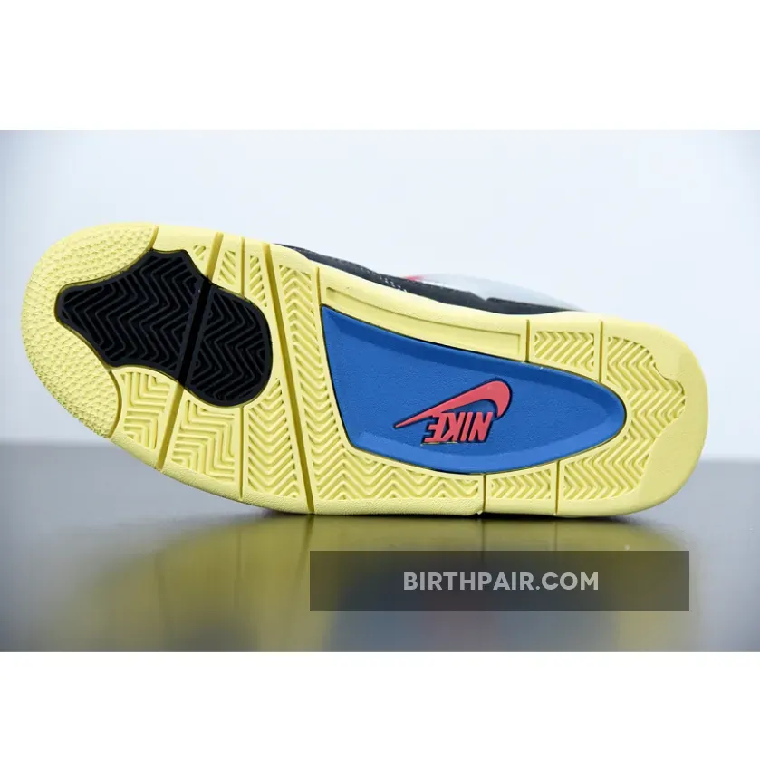 The Air Jordan 4 was famously designed by Tinker Hatfield and is one of the best Nike Air Jordan silhouettes of all time. The collab follows a sail, blue and red colorway, with the translucent wings keeping the laces firmly in place.