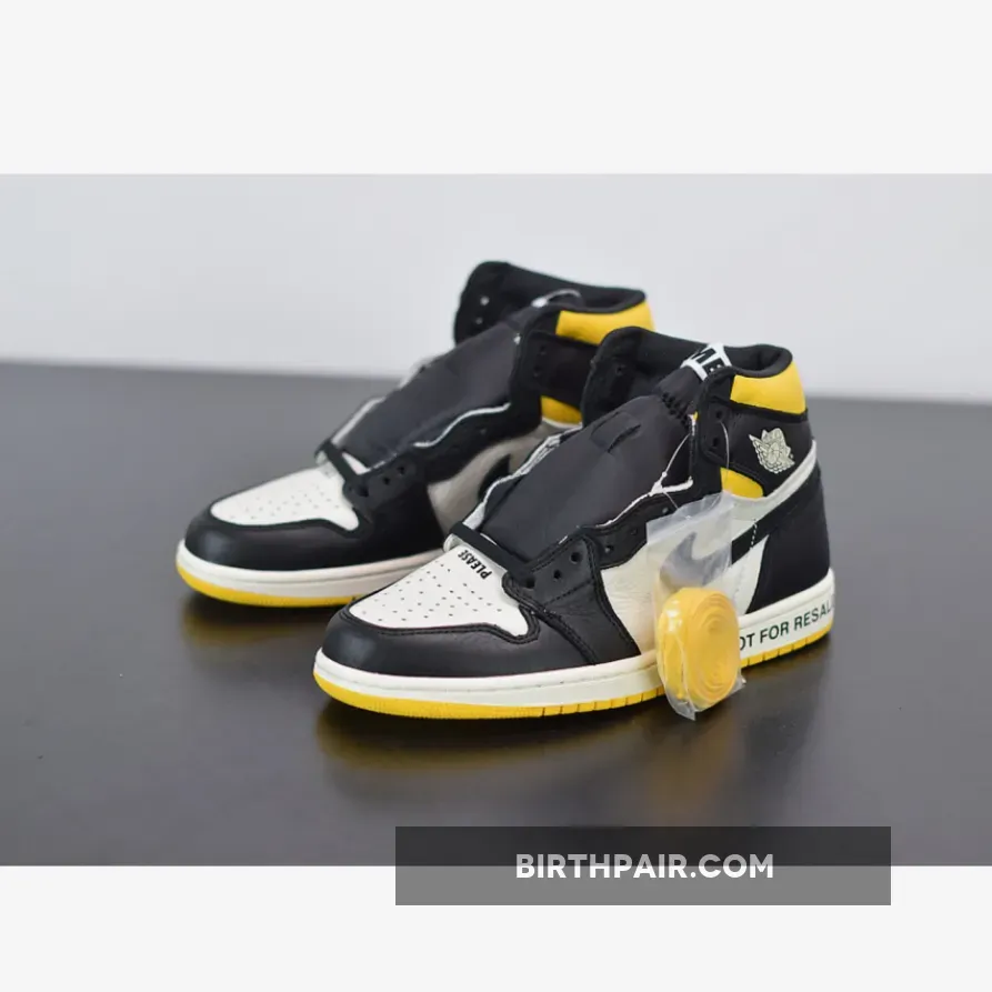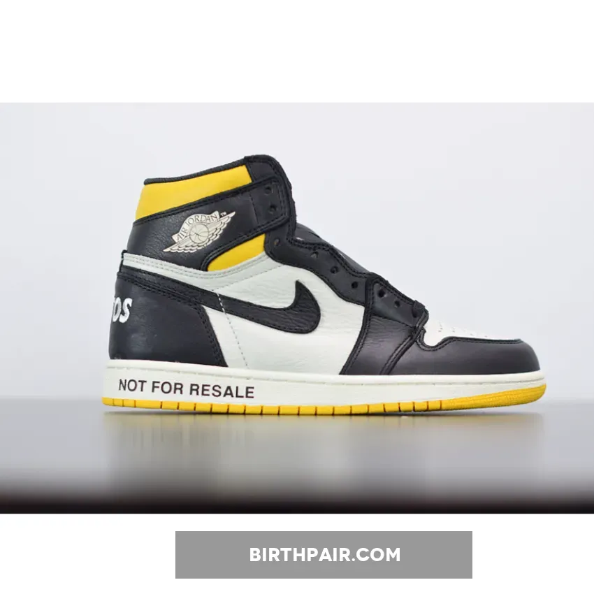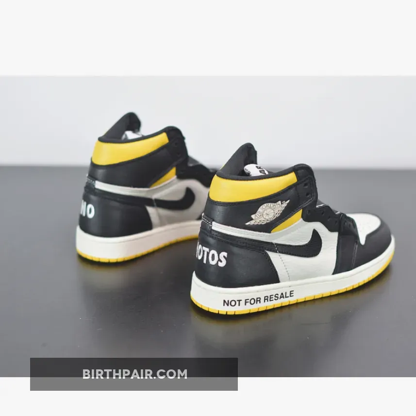 The Air Jordan 1 Retro High OG NRG ‘Not for Resale’ takes a playful stab at reseller culture, featuring a number of text-heavy embellishments on an otherwise straightforward colorway that blends Sail, black and Varsity Maize. They include ‘Not for Resale’ printed on the midsole, ‘Please Crease’ on the toe box and ‘No Photos’ embroidered across the heels of the left and right shoes.