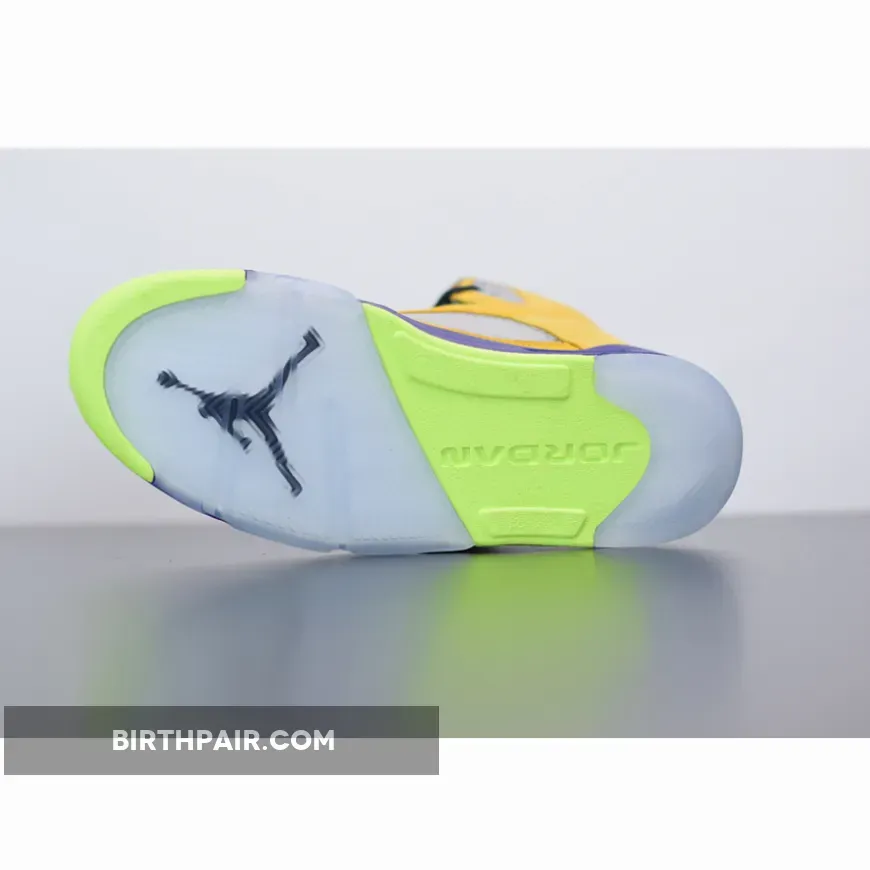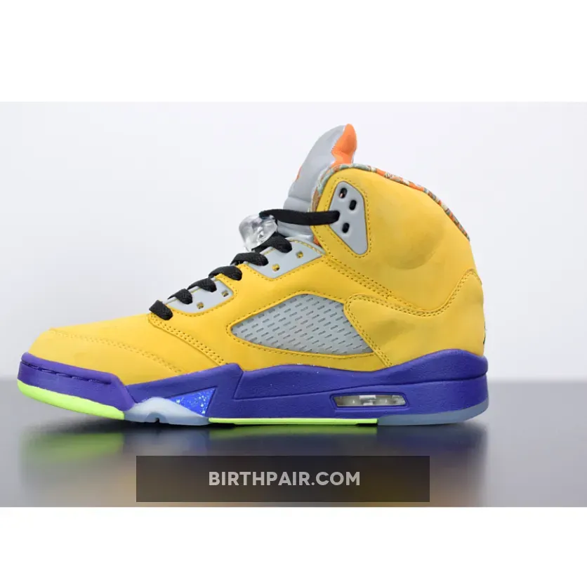 The Jordan 5 What The is the latest Air Jordan set to drop from Nike and Jordan Brand, and we’ve got a first look right here. The legendary Jordan 5 dropped for the first time in 1990 as Michael Jordan’s fifth signature Nike Air sneaker, and was designed by the one and only Tinker Hatfield. While Air Jordans have always been popular amongst basketball fans, the popularity of these specific basketball shoes has increased massively as of late due to high-end collaborations with those such as Virgil Abloh and of course the highly-coveted ESPN documentary The Last Dance (documenting Michael Jordan and the Chicago Bulls). The colorway seen here is a crazy-looking mash-up of some of the most iconic colourways of the Jordan 5 of all time, launching to celebrate the 30th anniversary of the pair, and we’ve got your best look yet. Vibrant shades of yellow, red, purple, green and many other colours adorn the luxury suede uppers, while Jumpman branding at the tongue and various other motifs are carefully placed for a premium look. The Nike Air Jordan Jumpman logo once again adorns the heel, where panels from the iconic “Purple Grape” AJV can be found. Of course, a visible Nike Air unit is present under the heel, making sure that these are mega comfortable both on and off the basketball courts. The Nike Air Jordan 5 What The has finally been given a release date for later on this year, when it’s set to drop at select retailer sites across the internet and the Nike SNKRS app. There’s no doubting that this retro release is going to be a hyped one, so if you’re looking to cop these future classic Air Jordan’s make sure to stay locked in right here at Our Store Supplier, as we’ll update this page with direct links to retailer sites and the retail price as soon as it’s announced.