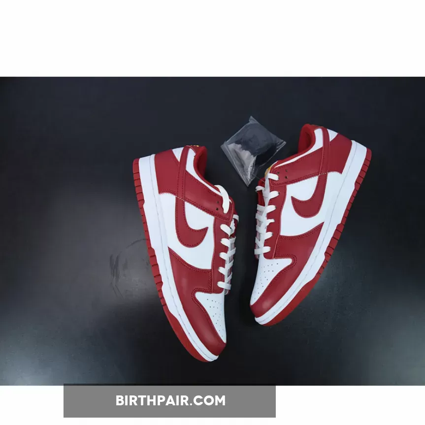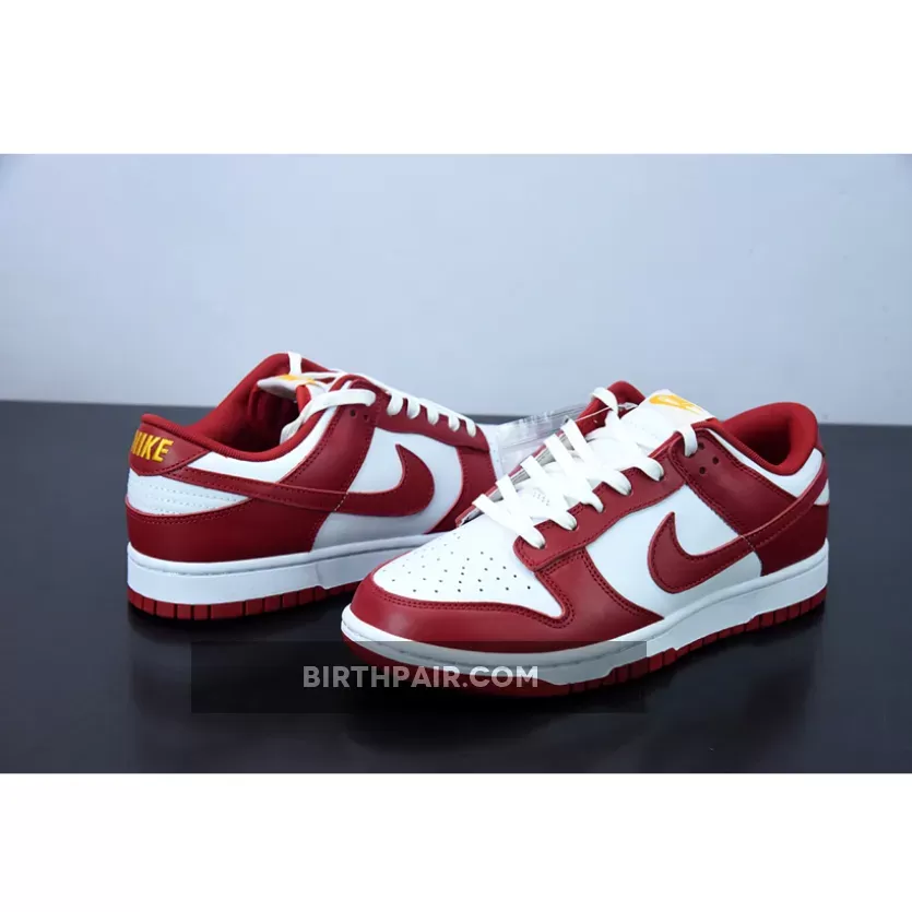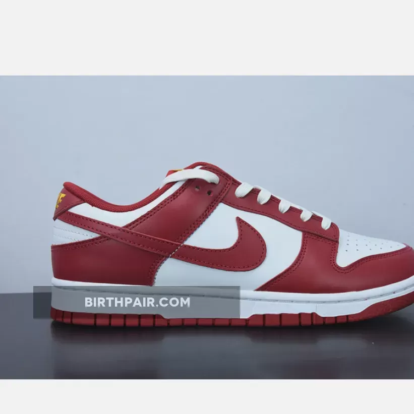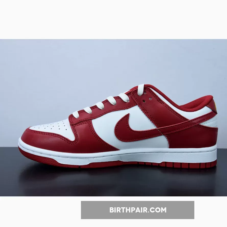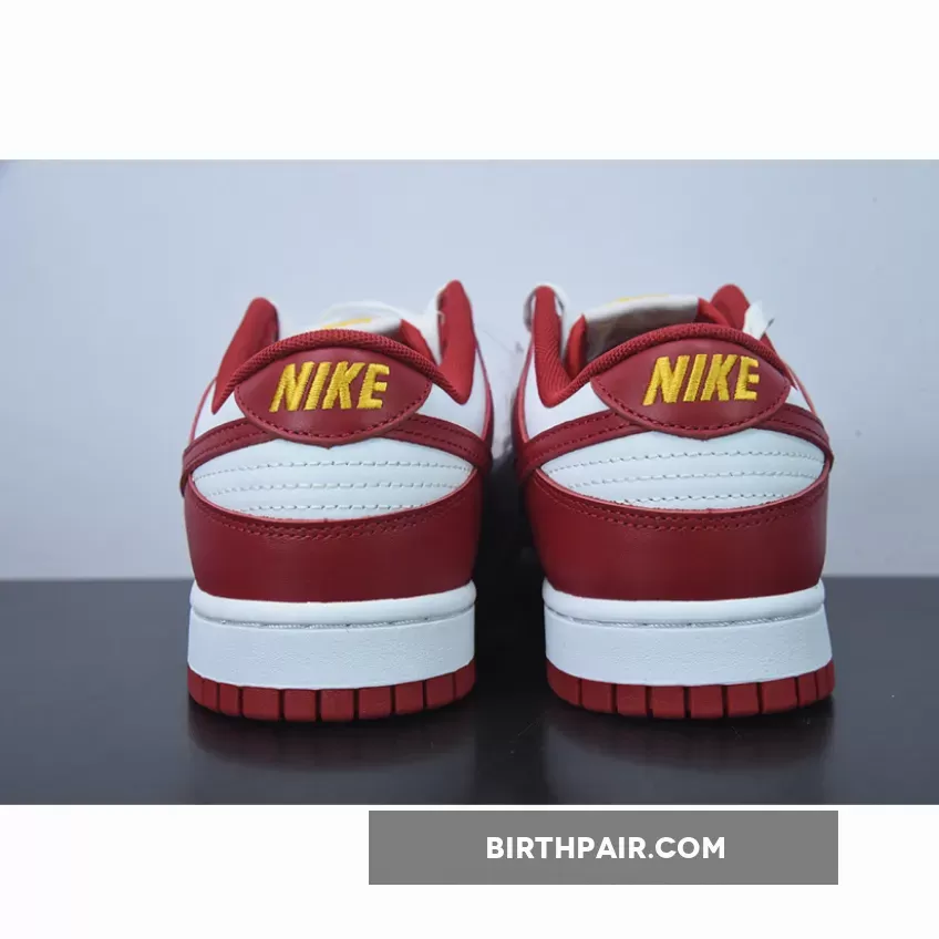 A cool for school pair, the Nike Dunk Low Gym Red pays homage to the University of Southern California by adopting its official colour palette. Similar to the original Dunk, this iteration showcases a classic colour blocking, with the smooth white leather base acting as the blank canvas for bright red leather overlays and Swooshes to take the vanguard. This shoe sports the class two-tone colour scheme of the Dunk Low, but this time the overlays and the profile Swooshes along the quarters are in a bold and dramatic Gym Red. The base is the blank canvas in smooth and perforated white leather. A pop of yellow adds another dimension of interest to this pair. The Nike branding on the white nylon tongue is golden yellow. This same yellow appears once again as the Nike branding on the all-red insole.