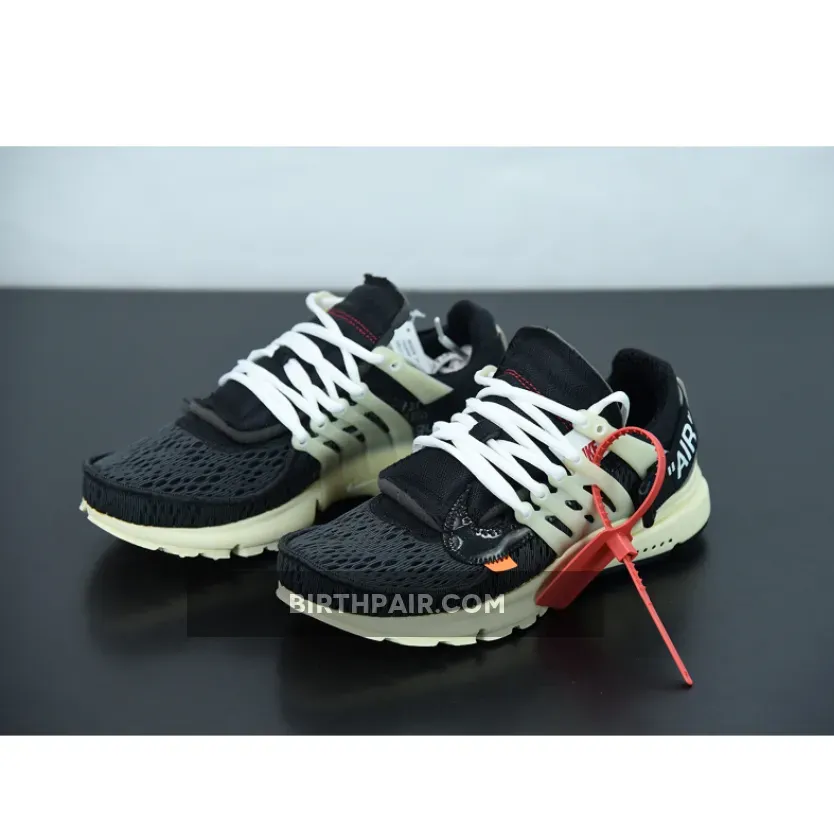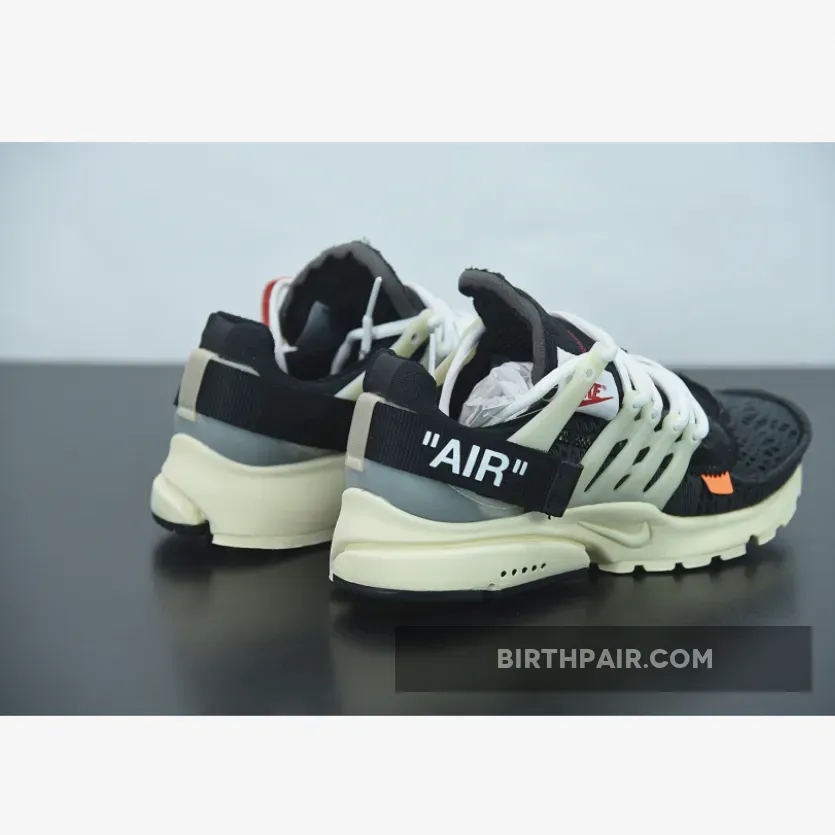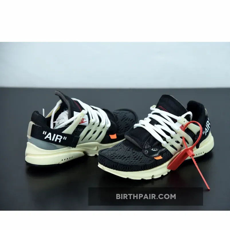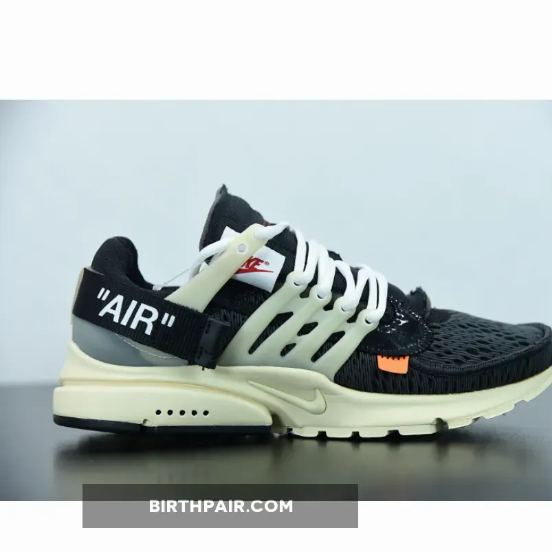 The OFF-WHITE x Nike Air Presto boasts a sleek, hand-crafted design. Love the inside-out appearance, reflective Swoosh, and unique heel strap. Versatile black colorway complements any outfit. Comfy and stylish, a must-have for any sneaker enthusiast. #SneakerGoals #TheTen #OFFWHITExNike