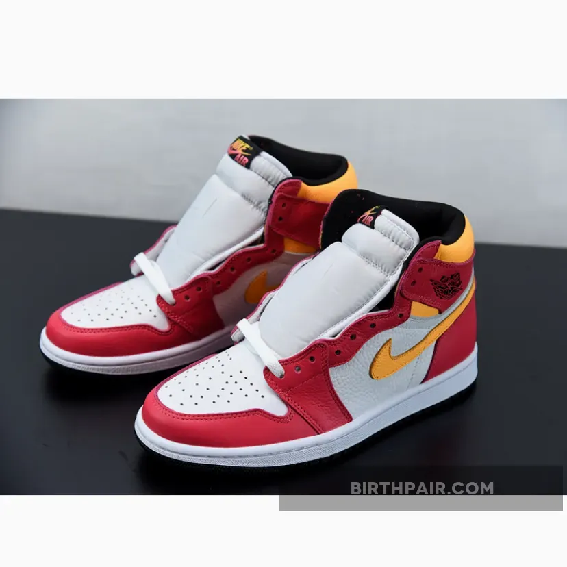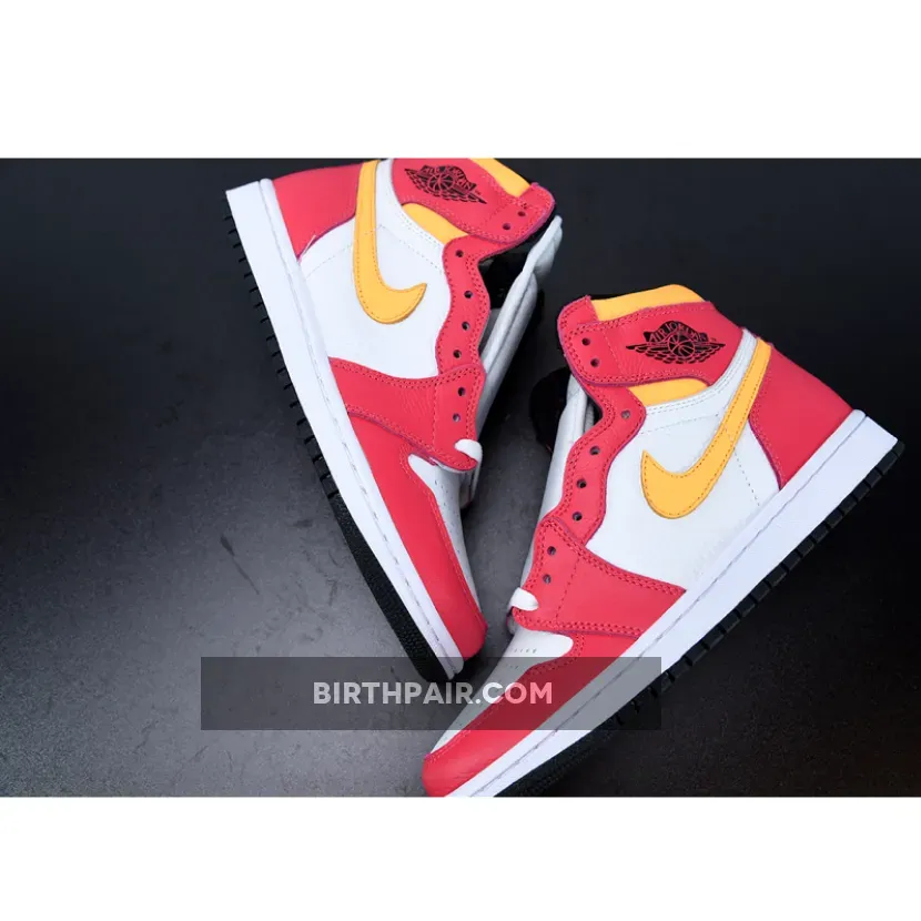 The Jordan 1 High OG Light Fusion Red is a new offering of the Jordan Brand’s world-famous Air Jordan 1 silhouette that has become one of the greatest Nike silhouettes of all time. The high top sneaker was first introduced in 1985 as Michael Jordan’s first-ever signature sneaker alongside the respective low and mid-top versions.The upcoming Air Jordan 1 is seen here with Light Fusion Red overlays constructed on a white leather base for a splash of contrast, resulting in a pair of Js with a very clean colourway that will persuade you to add these to your collection. Black accents then touch the laces and lining, and further branding details on the tongue label appear in a Laser Orange colourway together with the iconic Nike Swoosh logos on the quarter panels to complete the look.The Nike Air Jordan 1 High OG Light Fusion Red, set to launch later on this year, will have some hype around it especially in the basketball community.