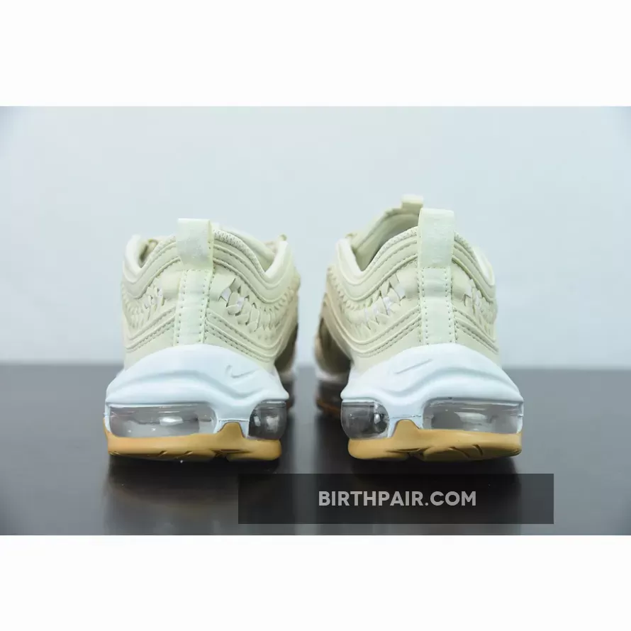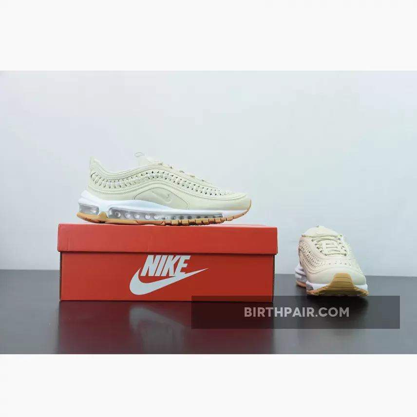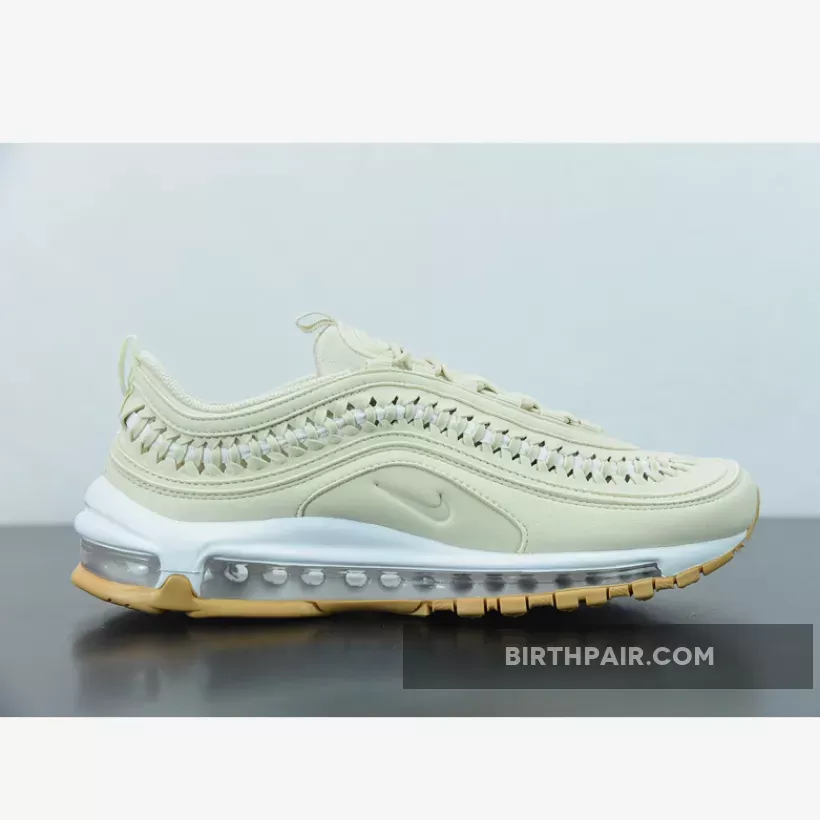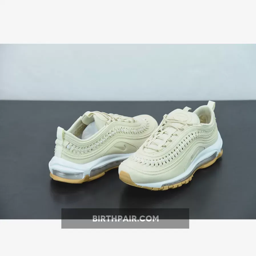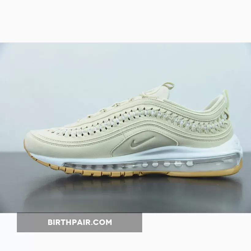 This pair comes in a neutral bone-and-white combination that makes it the perfect backdrop for the wavy and unique weave that runs from its heel to toe. The weave adds extra ventilation making your feet feel extra comfy, with or without socks. The upper is in a soft matte textile and the sock liner is in a breathable mesh. You know you want to slip into a pair. You can also use our Air Max 97 size guide to know how they fit.