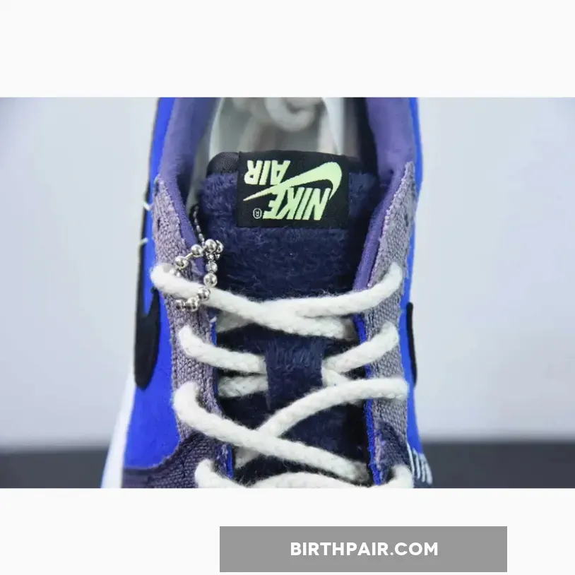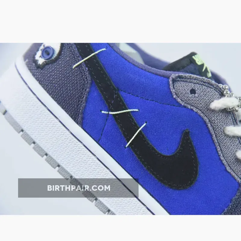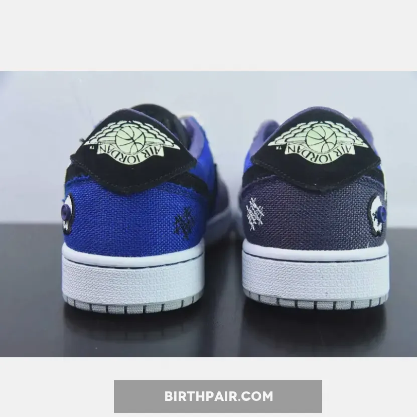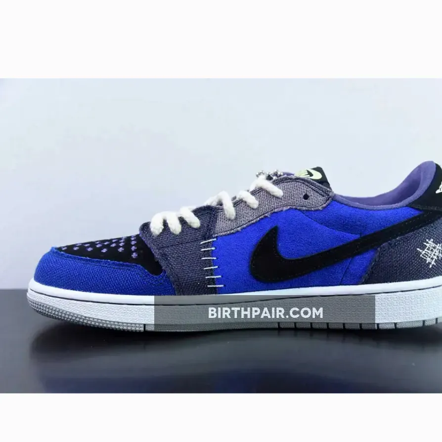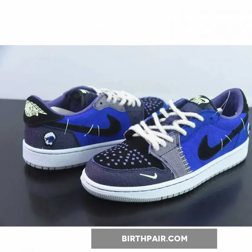 The Zion Williamson x Air Jordan 1 Low OG “Voodoo Alternate” is a shoe that features a mix of blue tones, suede, and burlap-like materials. The shoe is inspired by voodoo dolls and Williamson’s New Orleans background. It has an aesthetic that blends traditional voodoo imagery with a modern style.
